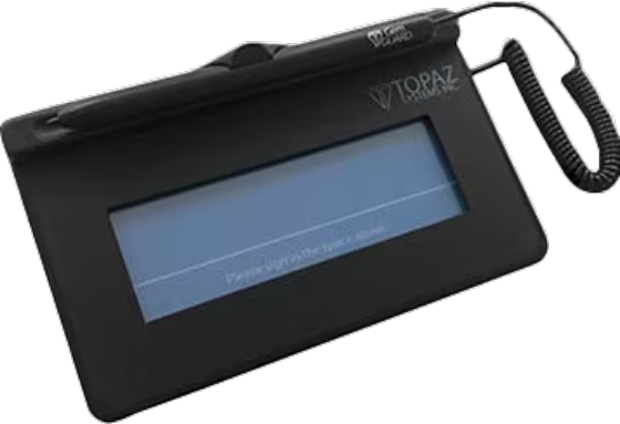 We support the Topaz SigLite T-S460-HSB Wired Signature Terminal on the windows operating system. This allows for signature capture without printing a receipt. It is stored safely with the receipt when needed. SigWeb software for windows is available on Topaz's website.